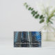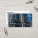 Cartões de visitas comerciais especiais de temas imobiliários criados a um abstrato de prédios de escritórios e seu nome comercial, apresentados na frente e em detalhes de contato no layout editável personalizado no flipside.