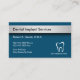 Cirurgião dentário moderno e implantes dentários modelo de cartão de negócios com poderoso design que influencia um modelo de compromisso no lado do sacudir. Projetado para o próprio cirurgião oral que trabalha com implantes, pontes e cirurgia estética dentária.
