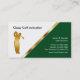 modelo de cartão de negócios de instrutor de golfe em um design de classe que inclui um golfista dourado balançando um clube de golfe junto com a cor de fundo verde que você pode mudar se quiser. Personalize os modelos de texto para atender às suas necessidades.