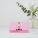 Um doce, giro e modesto cartão de visita que vem com uma ilustração de uma instrutora de yoga feminina vestida de um tanque rosa e calças de yoga pretas com ela amarrada em um pão. Ela está sentada em uma posição calmante de yoga de meditação. Personalize seus detalhes comerciais em preto-e-branco contra o fundo rosa. Excelente para senhoras freelance que são instrutoras de yoga ou pilates, na indústria de meditação, saúde e malhações.