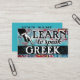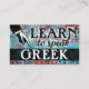 O Colorido Aprende a Falar cartões de visitas gregos em turquesa, aqua, vermelho, amarelo. Cartões de visitas de instrução em língua grega.