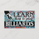 Colorido Aprenda a Tocar cartões de visitas Bilhares em turquesa, aqua, vermelha, amarela. Cartões de visitas de treinadores Billiards.