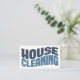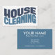 Um cartão de visita de limpeza da casa ousado que diz "Limpeza da casa" em tons de azul. Sinta-se livre para mudar as cores de fundo para qualquer coisa que você quiser.