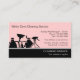 Cartão de visita de serviço de limpeza com modelo de design profissional moderno que inclui uma cor de fundo rosa que pode personalizar, texto e layout que pode personalizar e imagem com material de limpeza. Uma maneira barata de promover seus serviços criados como modelo de cartão de negócios para uma empregada doméstica, empregada doméstica ou serviços de limpeza.