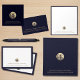 Deixe uma impressão duradoura com nosso elegante marinho e cartões de visitas dourados com logotipo personalizável. O fundo azul clássico do marinho sólido e o logotipo do selo dourado escovado estão prontos para uso na prateleira ou podem ser personalizados com o seu logotipo. Um design elegante, perfeito para planejadores imobiliários, advogados, conselheiros e qualquer profissional de negócios que queira deixar uma impressão duradoura. Conecte-se com confiança e mostre seus detalhes profissionais.