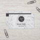 Este cartão de visita usa um fundo de mármore da textura, e uma paleta de cor intemporal elegante do preto, do cinza e do branco para comunicar um sentido do ajuste luxuoso para o cliente. No preto é o ícone da silhueta de um par de scissor. O excelente para profissionais do corte do cabelo gosta de barbeiros, de cabeleireiros e de cabeleireiros. Você pode igualmente remover o fundo de mármore para mantê-lo minimalista.