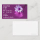 Cartões de visitas de massagem com flores roxas e fundo roxo de calmante, juntamente com um layout de texto de excelente que você pode personalizar. Melhor cartão de visita para fisioterapeuta, massagem ou massagem.