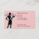 Cartões de visitas de moda com moça na moda na frente com horizonte de segundo plano na cidade e layout de texto de excelente que você pode personalizar. Perfeito para qualquer tema de cartão de visita relacionado à moda, beleza, boutiques ou decoração, até mesmo um salão de cabelo ou prego.