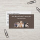 A nomeação e o modelo de cartão de negócios do serviço de treino de cães e cachorros criaram com uma imagem de uma variedade de cães e do seu nome profissional ou profissional apresentado na frente e o seu detalhe e o modelo de compromisso apresentados no lado duplo. Concebidos para temas relacionados com o aliciamento de cães, aliciamento, treinadores de cães ou canil.