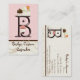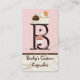 Cartões de visitas personalizados da letra B para o seu cupcake ou outra empresa de padaria. Doce e Contemporâneo! Este cartão de visita apresenta três cupcakes pintados à mão em chocolate marrom e rosa macio e creme. A Letra Monográfica está no "chocolate" e vai apelar aos amantes doces em todo o lado! O fundo é cor-de-rosa macio, com espirais latas coloridas sobre um acabamento de bolachas e biscoitos de chocolate. Esta design é perfeita para o seu chá de casamento, chá de panela ou para empresas como coordenadores de casamento, planejadores de eventos, padarias, compras de assares, designers de bolo de casamento personalizados, serviços de cupcake especial e muito mais. Todas as letras do alfabeto estão disponíveis, se você não vê o que você quer apenas nos enviar um e-mail!