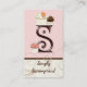 Cartões de visitas personalizadas da letra S Monograma para o seu cupcake ou outra empresa de padaria. Doce e Contemporâneo! Este cartão de visita apresenta três cupcakes pintados à mão em chocolate marrom e rosa macio e creme. A Letra Monográfica está no "chocolate" e vai apelar aos amantes doces em todo o lado! O fundo é cor-de-rosa macio, com espirais latas coloridas sobre um acabamento de bolachas e biscoitos de chocolate. Esta design é perfeita para o seu chá de casamento, chá de panela ou para empresas como coordenadores de casamento, planejadores de eventos, padarias, compras de assares, designers de bolo de casamento personalizados, serviços de cupcake especial e muito mais. Todas as letras do alfabeto estão disponíveis, se você não vê o que você quer apenas nos enviar um e-mail!