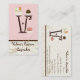 Cartões de visitas personalizadas da letra V Monograma para o seu cupcake ou outra empresa de padaria. Doce e Contemporâneo! Este cartão de visita apresenta três cupcakes pintados à mão em chocolate marrom e rosa macio e creme. A Letra Monográfica está no "chocolate" e vai apelar aos amantes doces em todo o lado! O fundo é cor-de-rosa macio, com espirais latas coloridas sobre um acabamento de bolachas e biscoitos de chocolate. Esta design é perfeita para o seu chá de casamento, chá de panela ou para empresas como coordenadores de casamento, planejadores de eventos, padarias, compras de assares, designers de bolo de casamento personalizados, serviços de cupcake especial e muito mais. Todas as letras do alfabeto estão disponíveis, se você não vê o que você quer apenas nos enviar um e-mail!