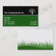 Cartões de visitas de cuidado com gramados com uma foto de excelente de erva e um layout de texto fácil que você pode personalizar on-line. Perfeito para temas de cartão de visita relacionados com paisagens de jardins ou manutenção de terrenos. Você também pode usar este cartão de visita para aparar árvores ou para o serviço de grampeamento.