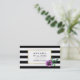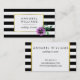 Estas belas cartões de visitas duplas são profissionais, mas femininas. Design inclui listras brancas e pretas cônicas com uma flor pansível de cor d'água púrpura e sotaques dourados falsos.