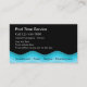 Cartões de visitas de serviço de natação com design moderna que inclui uma linha de onda azul representando água, estilo de texto e layout que você pode personalizar em ambos os lados, e um design que é útil para manutenção, instalação, reparos ou spas de uma piscina de natação.