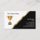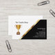 Prêmio de troféus cartões de visitas com design moderno incluem uma elegante linha design de elemento com aspecto ouro, imagem de um troféu e um simples design de cartão de visita que você personaliza o texto e muda a cor branca de fundo se quiser. Eu desenhei este modelo de cartão de negócios como um estilo único e elegante para um compro de troféus, negócios de prêmios personalizados ou serviços de reconhecimento.