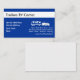 Cartões de visitas de trailer RV com aparência simples, mas profissional, que inclui um emblema de nome de empresa, cor de fundo que você pode personalizar e imagem de um RV e SUV rebocando-o. Altere o texto para adequá-lo à sua empresa; este é o melhor cartão de visita para vendas móveis domésticas, peças de vendas RV ou serviço.
