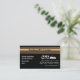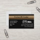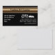 Cartões de visitas de trailer RV com aparência simples, mas de escala superior, que incluem um emblema de nome de empresa de cor dourada, cor de fundo preto que você pode personalizar e imagem de um RV e SUV rebocando-o. Altere o texto para adequá-lo à sua empresa; este é o melhor cartão de visita para vendas móveis domésticas, peças de vendas RV ou serviço.