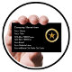 Cartões de visitas de segurança que você pode personalizar com design de classe que inclui um emblema de início metálico e um layout de texto que você pode personalizar. Melhores cartões de visitas para temas relacionados a polícia, segurança doméstica, segurança informática ou detetive privado.