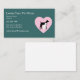 Coloque cartões de visitas com a imagem de um símbolo cardíaco de gato e cão e a cor de fundo que você pode personalizar. Personalize a cor ou o layout do texto para adequá-lo à sua empresa. Melhores cartões de visitas para temas relacionados com os cuidados aos animais de companhia, aos animais de companhia ou ao veterinário.