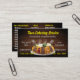 Cartões de visitas de serviço de Taco. Design moderno e colorido, com bastante espaço para informações adicionais no verso. Totalmente personalizável e fácil de personalizar. Adequado para catering mexicano por comidas, Restaurante Mexicano por Comidas, Taquerias, compro Taco, serviço Taquizas, restauração Taco.