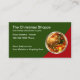 Cartões de visitas temáticos de Natal em um modelo online editável projetado com um elegante emblema de Feliz Natal e um layout clássico de cartão de visita que faz deste o cartão de chamada perfeito que você pode distribuir aos clientes. Criado nas cores verde e vermelha do espírito natalício.