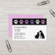 Trendy Pet care cartão de visita com impressão gráfica colorida de pata na moda com um logotipo de cão e gato. Um modelo editável que você pode personalizar on-line com a cor coordenada de fundo do sacudir. Perfeito para qualquer um que faça aliciamento de animais de estimação, tem um salão de animais de estimação, ou um profissional de estimação, babá de animais de estimação, ou até mesmo um veterinário.