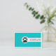 Clínica Veterinária, cartões de visitas minimalistas de pata preto, azul turquesa, branco, com pata preta em círculo branco. Fundo azul turquesa com bordas brancas. Um design excelente feminino para veterinários ou serviços de clínica/hospital para animais de companhia.