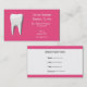Cartão de visita dentário cor-de-rosa com um dente branco, com cartão de compromisso no verso