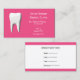 Cartão de visita dentário cor-de-rosa com um dente branco, com cartão de compromisso no verso