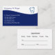 Cartão de visita de dentista com imagem de um elemento de plano de fundo moderno, dente e layout de texto que você pode personalizar facilmente. Inclui um cartão de visita na parte de trás neste estilo inteligente de dois lados projetado para dentista, consultório dentário ou assistente dentário. Vamos que você distribui suas cartões de visitas em estilo.