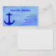 Marina personalizada e cartões de visitas de ancoragem perfeitos para uma empresa náutica, seja uma marina, um negócio de barco, um negócio de reparação de barcos. Esses cartões de visitas personalizados apresentam um design de âncora azul com um fundo azul multicolorido. Certifique-se de editar todos os campos de texto para adicionar as informações de sua empresa.