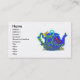 Cartões de visitas do bule da libélula