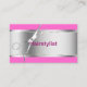 Cartões de visitas modernos do cabeleireiro com contexto metálico de prata simulado, uma cor que cor-de-rosa do fundo você pode personalizar, e o cabeleireiro scissors. Personalize o texto em dois lados. Design que fácil do estilo do modelo você pode se alterar ao seu gosto. Os melhores cartões de visitas para salões de beleza, cabeleireiro, hairstylists, ou o cortador independente do cabelo.