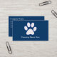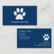 Persiga cartões de visitas com design simples que inclui uma disposição que da silhueta e do texto da pata do cão você pode personalizar agora. Os melhores cartões de visitas para temas relacionaram-se aos cães reais, ao treinamento, à obediência, ao passeio ou ao centro de dia neste design bilateral.