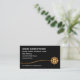 Cartões de visitas clássicos para um serviço de Inspeção Doméstica ou Avaliador de Casa projetados com um logotipo de marca de verificação de tom de ouro e uma linha de tom de ouro ondulado que adiciona um toque de classe a este cartão de visita editável.