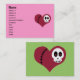 Este design de cartão de visita do coração do crânio apresenta um crânio de desenho animado com corações nos olhos em um coração rosa avermelhado estirado! Estas placas são excelente de rede! Personalize-as com as suas informações de contato (endereço de correio eletrônico, endereço de correio eletrônico, número de telefone, número de telefone celular ou qualquer outra coisa que pretenda!).