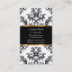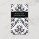 Cartões de visitas do decorador interior com disposição que preto e branco da cor damasco e do texto você pode personalizar agora. Cartão de visita à moda que é distintivo e fresco. Os melhores cartões de visitas para temas relacionaram-se à decoração, aos acessórios home e ao design de interiores.