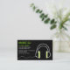 Os cartões de visitas do DJ da música com verde corajoso no design bilateral preto que inclui um grupo legal de fones de ouvido do disco-jóquei, texto que você pode facilmente personalizar, e projetam que representa para fora uma grande primeira impressão que seja recordada. Um design moderno que fosse projetado para todo o anfitrião, entretenimento, ou partido DJ da música.