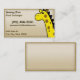 Aperfeiçoe para o depositário de jardim zoológico, o veterinário exótico, ou o qualquer um que apenas ama girafas! Uns desenhos animados do kawaii deste mamífero equipado com pernas longo estão no direito, com um fundo do tan claro. Cartões de visitas bonitos e originais do girafa - certos colar para fora na mente do seu cliente! Personalizado facilmente com sua informação nos momentos.