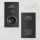 O modelo de cartão de negócios customizável para a indústria musical relativa presta serviços de manutenção - DJ, planeamento do evento, o equipamento audio, os produtores de rádio, o engenheiro sadio, a loja da música, o entretenimento etc. - a caracterizar o auto-falante audio na madeira cinzenta.