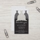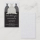 Cartão de visita preto, branco, e da platina do casamento do planejador com os vestidos laçado estilizados do vestido e da dama de honra de casamento. Sala na parte traseira para alguma informações adicionais. Personalize com seus próprios texto e escolha de papel. Ilustração original pelo pj_design. Estes vestidos de casamento laçado são decorados com lovebirds, videiras, e bagas. O fundo tem uma cor damasco bonito. Excelente para um planejador do casamento, um consultante nupcial, um fabricante do vestido, um desenhista, ou um planejador de evento.