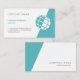 Modelo de cartão de negócios customizável com ilustração/logotipo do vetor do globo do mundo no branco e no azul da cerceta. Você pode mudar as cores de fundo e de texto!