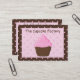 Um cupcake do chocolate com o glacé macio cor-de-rosa está em um quadro castanho chocolate com bolinhas cor-de-rosa, e na luz - centro cor-de-rosa das bolinhas. Aperfeiçoe se você possuem uma padaria, há uma abundância do espaço do texto para a personalizar com tudo que você precisa!