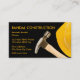 Novo modelo de cartão de negócios para empreiteiro de construção e serviços de construção residenciais ou comerciais, incluindo um chapéu de duro e um gráfico de martelo em segundo plano.