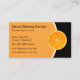 Cartões de visitas de limpeza de casas para limpeza de escritórios residenciais ou comerciais em um design com tema cítrico que tem uma imagem gráfica de uma laranja cítrica em um design moderno que você pode personalizar. Mude a cor preta do fundo, personalize facilmente o texto e use-o como modelo de cartão de negócios para uma casa ou serviço de limpeza de escritório, empregada ou senhora de limpeza. especial.