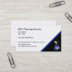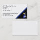 Cartões de visitas modernos de serviço de limpeza com fundo branco que você pode personalizar, espaço de texto que você pode personalizar e imagem de um esfregão e uma garrafa de spray de limpeza. Inclui impressão lateral e destina-se a serviços de limpeza residenciais ou comerciais.