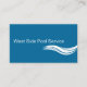 Modelo de cartão de negócios de serviço de natação piscina, incluindo símbolo gráfico de água de ondas e design inteligente com texto que você pode personalizar. Projetado para manutenção, reparador, vendas ou construção de piscinas.