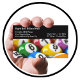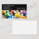 Este modelo de cartão de negócios do tema bilhar tem uma imagem colorida de tela gráfica colorida de bolas e texto bilhar que você pode personalizar online para seu salão de piscina, salão de bilhar ou bar esportivo.