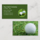 Cartões de visitas modernos de golfe duplo com uma imagem de fundo gráfica de uma bola de golfe na grama e um layout organizado que você pode personalizar online para a indústria de golfe incluindo, mas não se limitando a, aulas, suprimentos, sites ou promocionais de golfe.